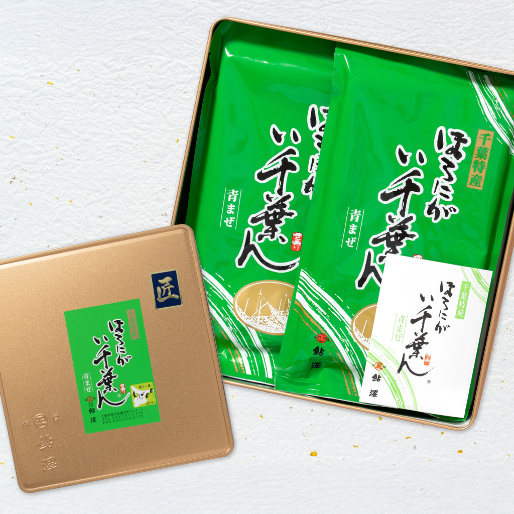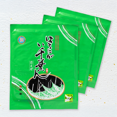本商品は、千葉県産の希少な「青混ぜ海苔」を使用しています。