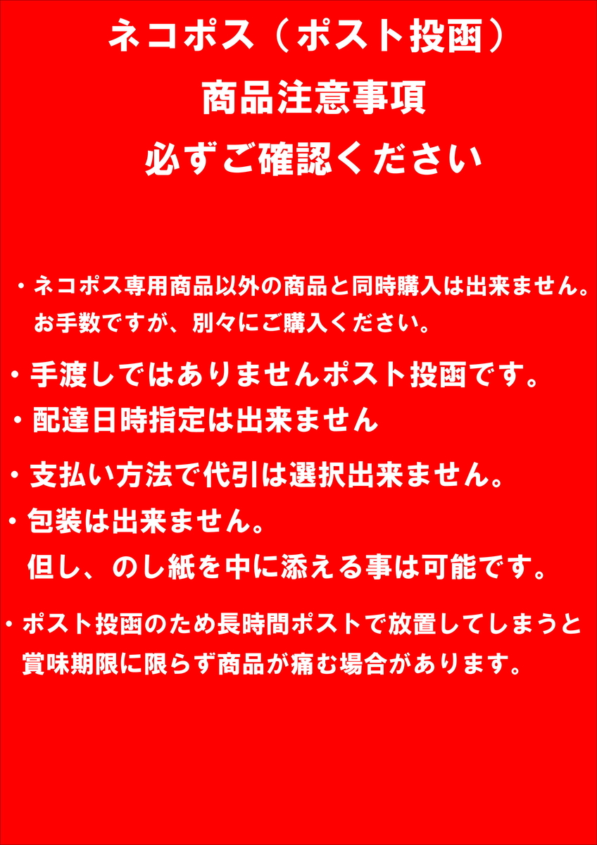 ・夏場などの高温時、長時間ポストで放置されたままですと賞味期限に関わらず商品が傷む恐れがあります。