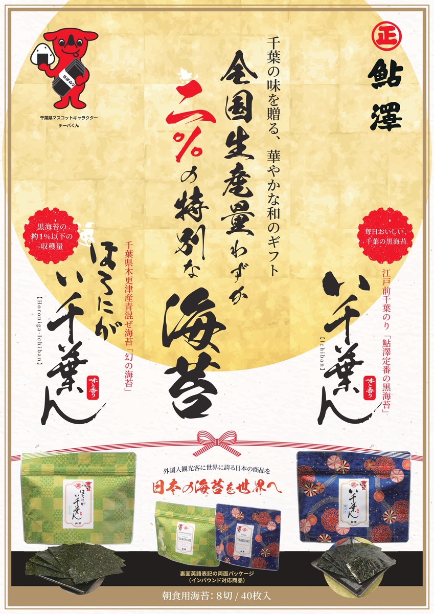 千葉のりは、国内産のわずか2%と限られているため大変希少の海苔です。