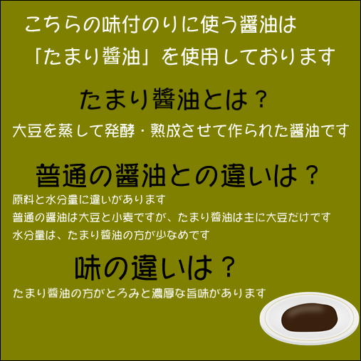 当店の味付のりは、海苔の風味や旨味を損なわないように心掛けて醤油たれで味付してあります。