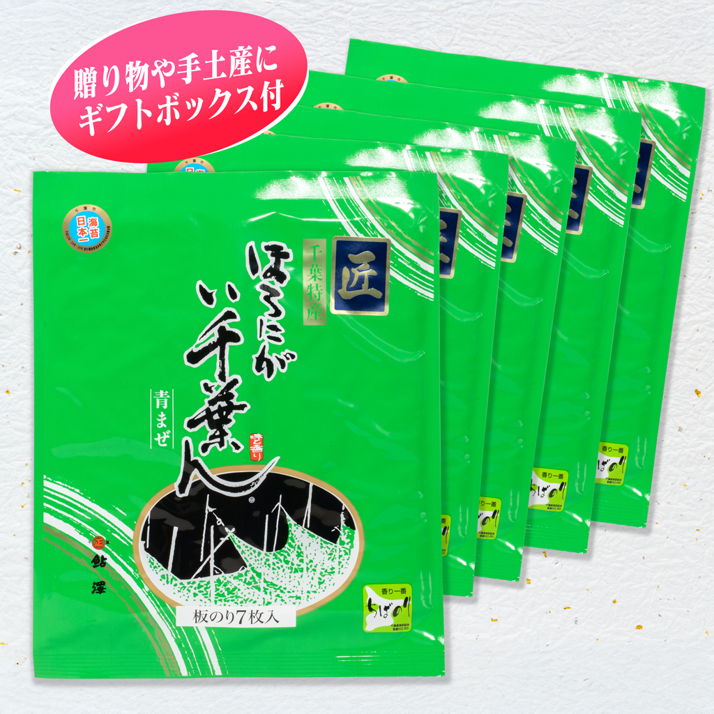 本商品は、千葉県産の希少な「青混ぜ海苔」を使用しています。