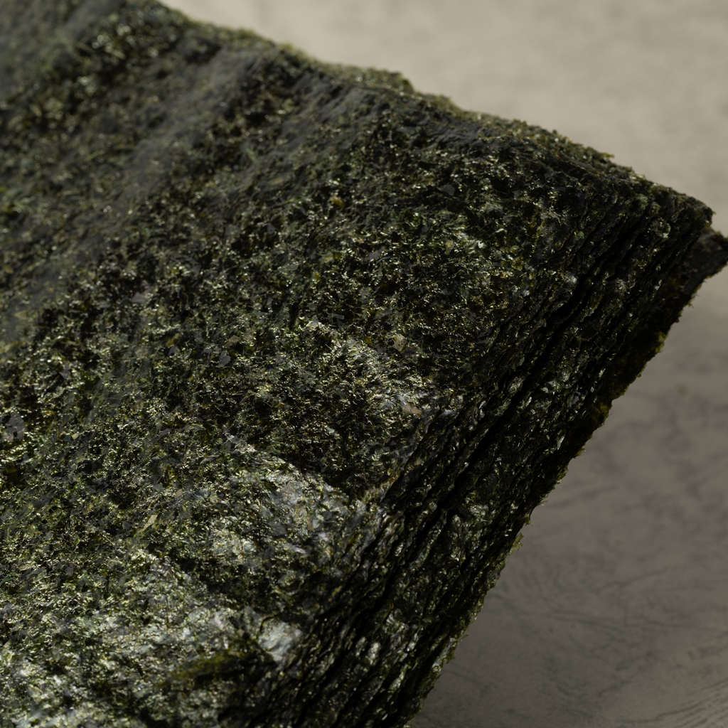 木更津産の青混ぜのりの焼のりです。磯の風味がありほろ苦さが特徴で大変稀少な海苔です。