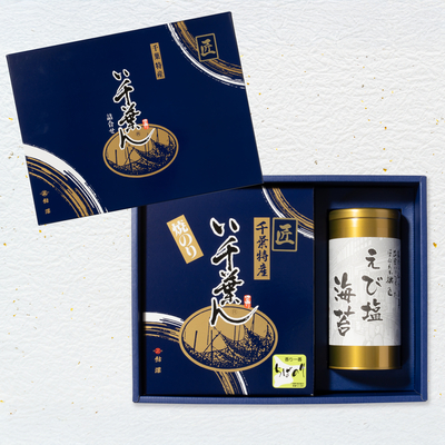 数量:い千葉ん(全型7枚入り×5袋)/味付えび塩のり 8切5枚入×10袋缶入
