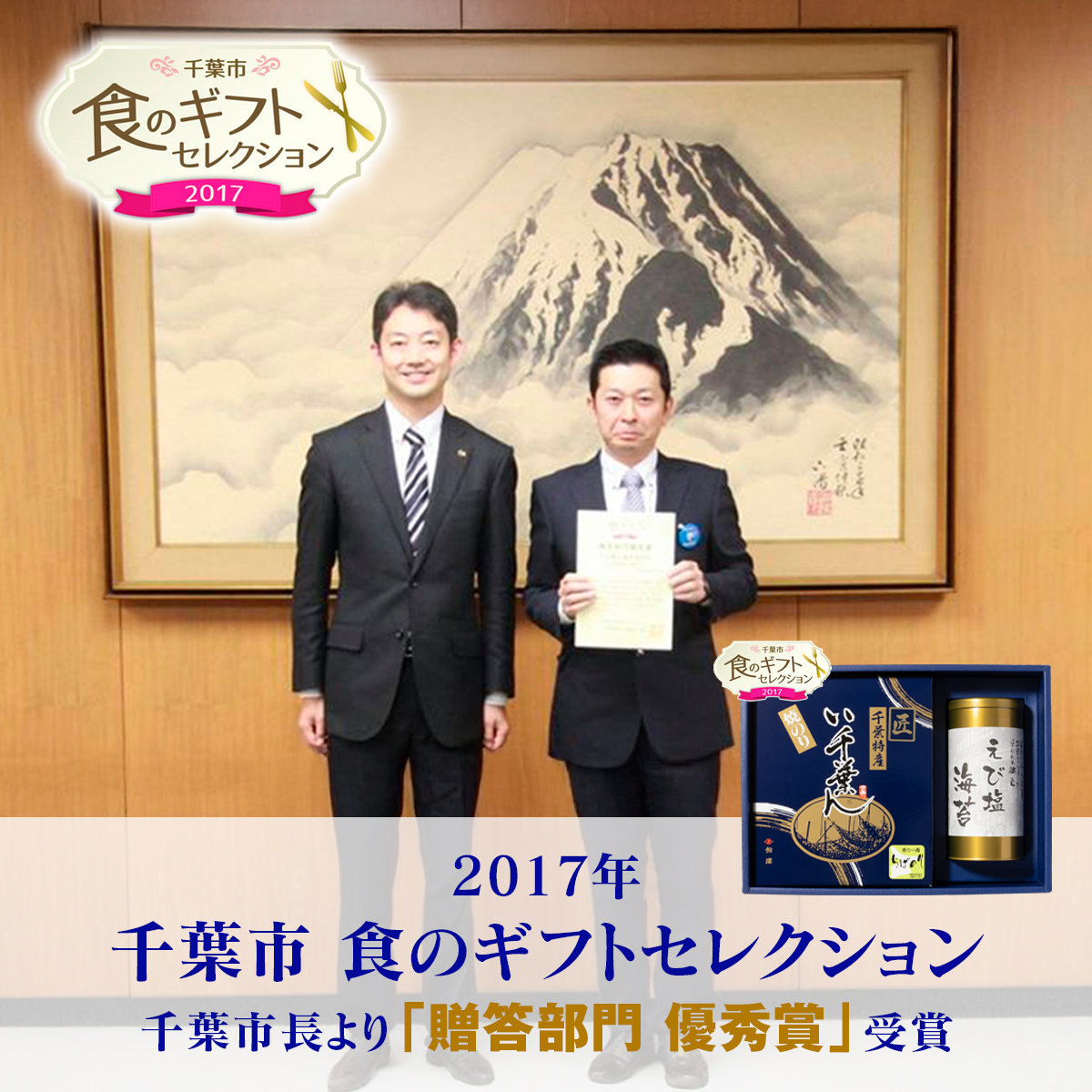 2017年「千葉市食のギフトセレクション」贈答部門 優秀賞を受賞。千葉県産・江戸前海苔の魅力を余すことなく引き出した詰合せとして、高く評価された自信のギフトです。