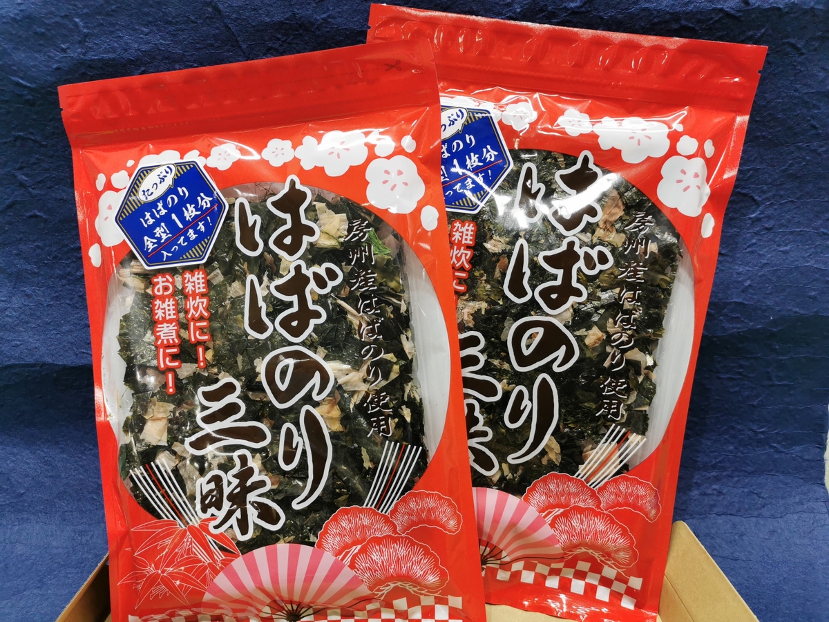 千葉県ではお正月のお雑煮に欠かせないハバのりをすぐに使えるように鰹節と青のりをミックスいたしました。